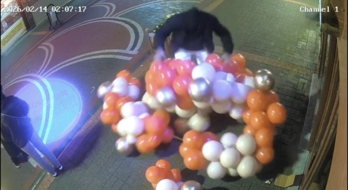 Görüntülere yansıyan anlarda, şüphelinin balonları bulunduğu yerden sökerek yere attığı; ardından bazı balonları üzerine basarak patlattığı görüldü. Olayın iş yerinin güvenlik kamerası kayıtlarına da geçtiği ifade edildi.