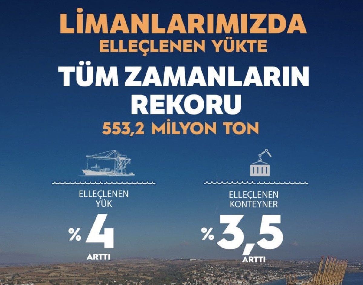 “2025’te limanlarımızda elleçlenen yük miktarı bir önceki yıla göre yüzde 4 artışla 553 milyon 268 bin 303 tona ulaştı ve Cumhuriyet tarihinin rekoru kırıldı.”