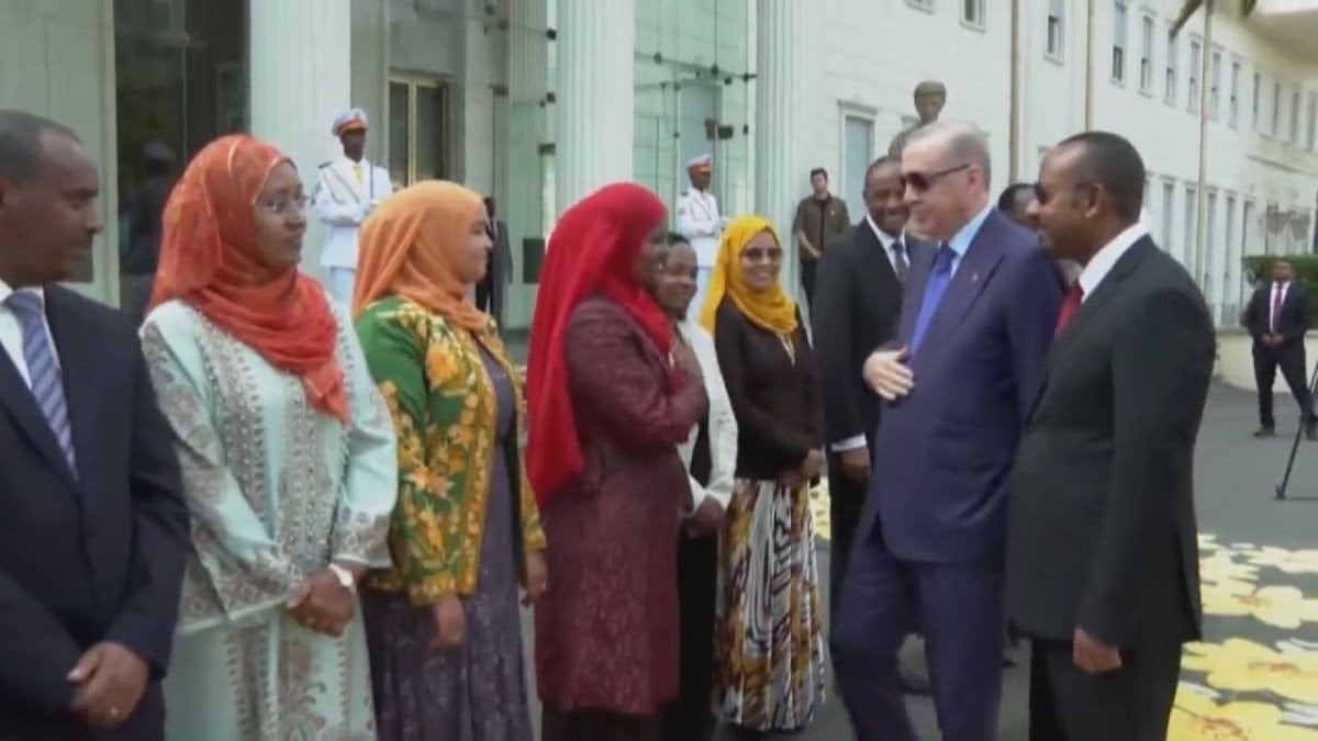 Cumhurbaşkanı Erdoğan’ı Ulusal Saray’da Etiyopya Başbakanı Abiy Ahmed Ali karşıladı. Erdoğan’ın makam aracına tören sırasında Etiyopya’nın atlı süvarilerinin eşlik ettiği belirtildi.